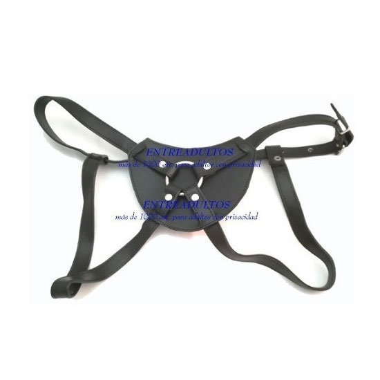 Fuerte y resistente arnés de cuero con regulaciones con hebilla y tiras de cuero (no elástico), ideal para cualquier talle. Totalmente regulable a cualquier tamaño de cintura. Con una argolla metálica para una mejor sujeción del pene. Circunferencia máxima aprox 90cm.